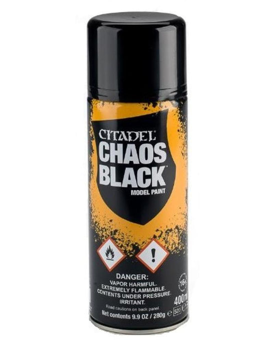 Chaos Black Spray is designed for basecoating plastic, resin and metal Citadel miniatures. Reformulated for maximum results, with a fantastic black colour, it's a fast way to get a uniform base of colour onto models.